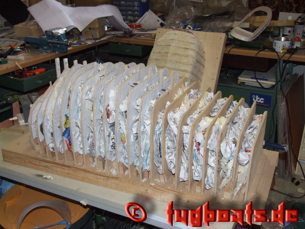 Model of the finnish ASD tugboat "AHTI" in scale to 1:32. This boat is specially designed for the use in the strong northern winter and is possible to break ice in the finnish ports.