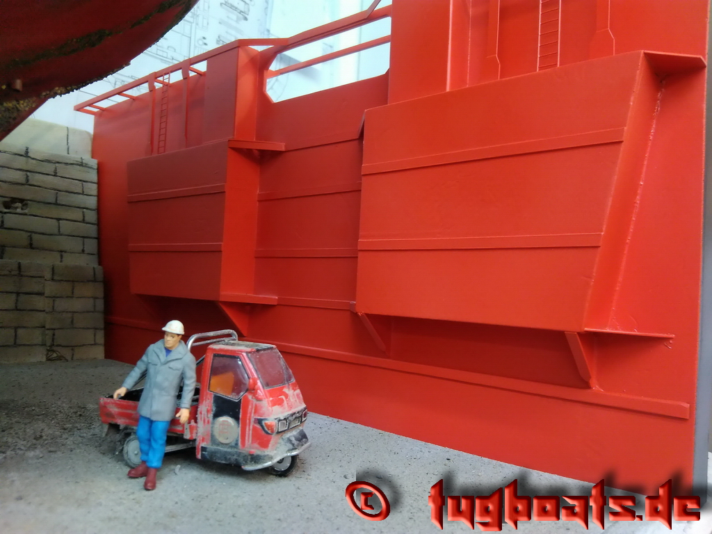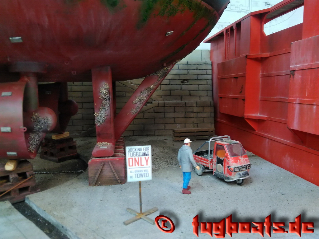 I built this drydock to display my models during exhibitions. I took the drydock from Rimorchiatori Riuiti in Genova as model.