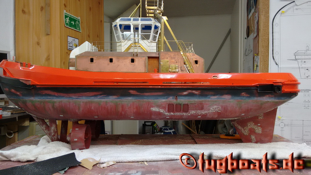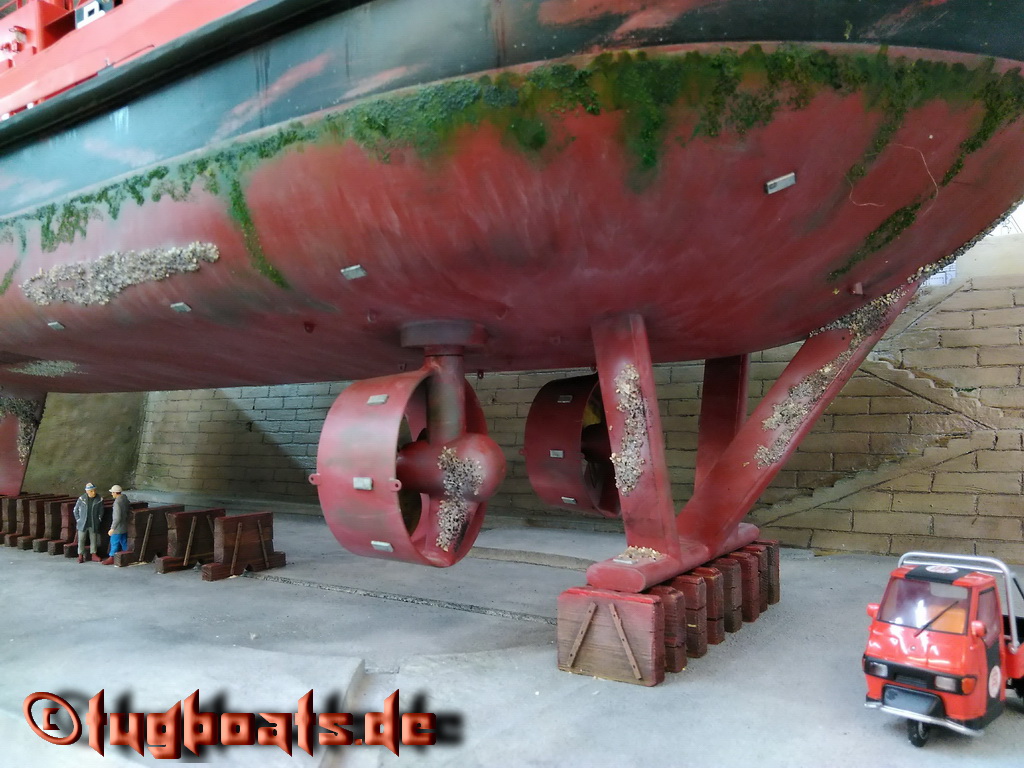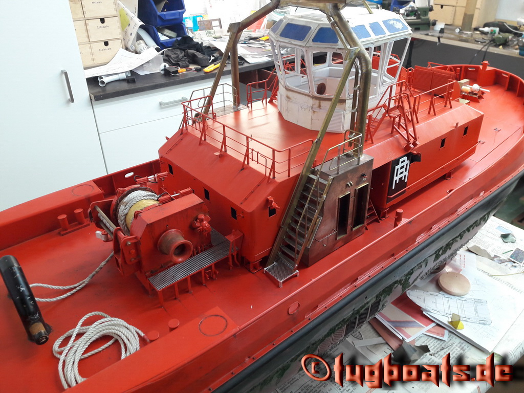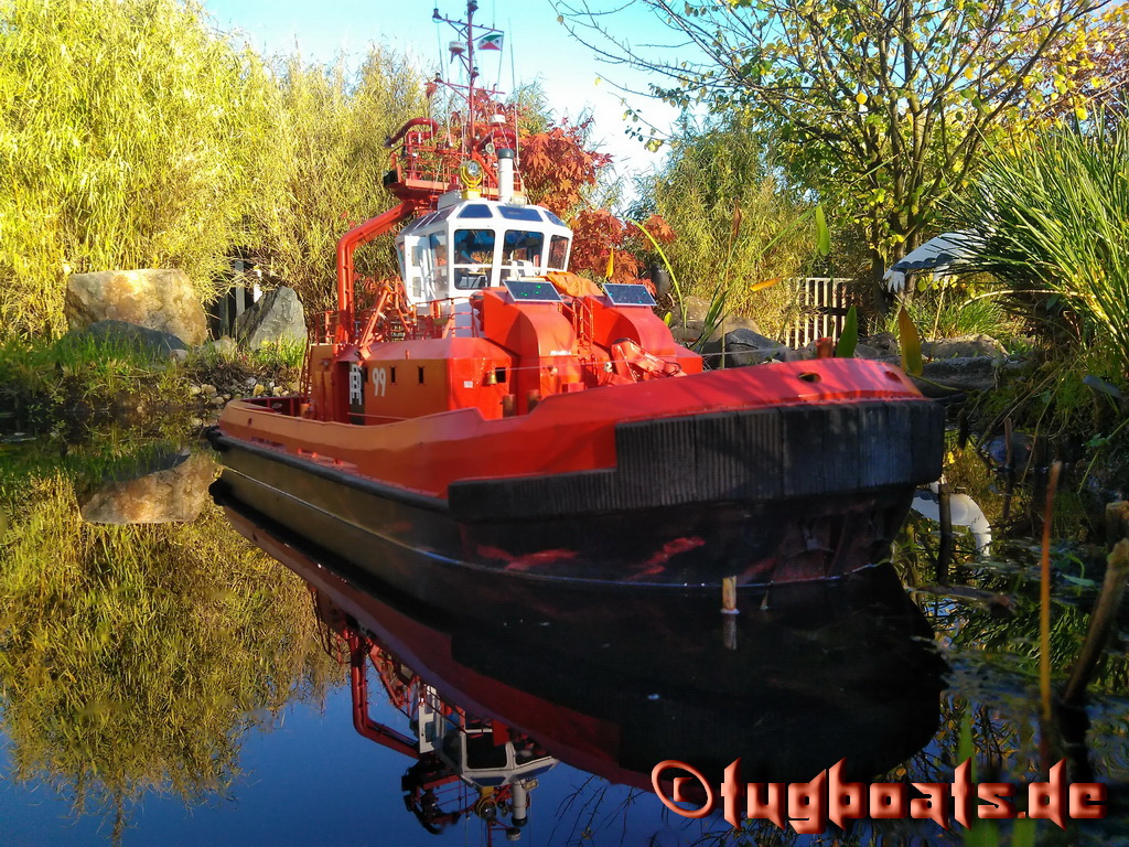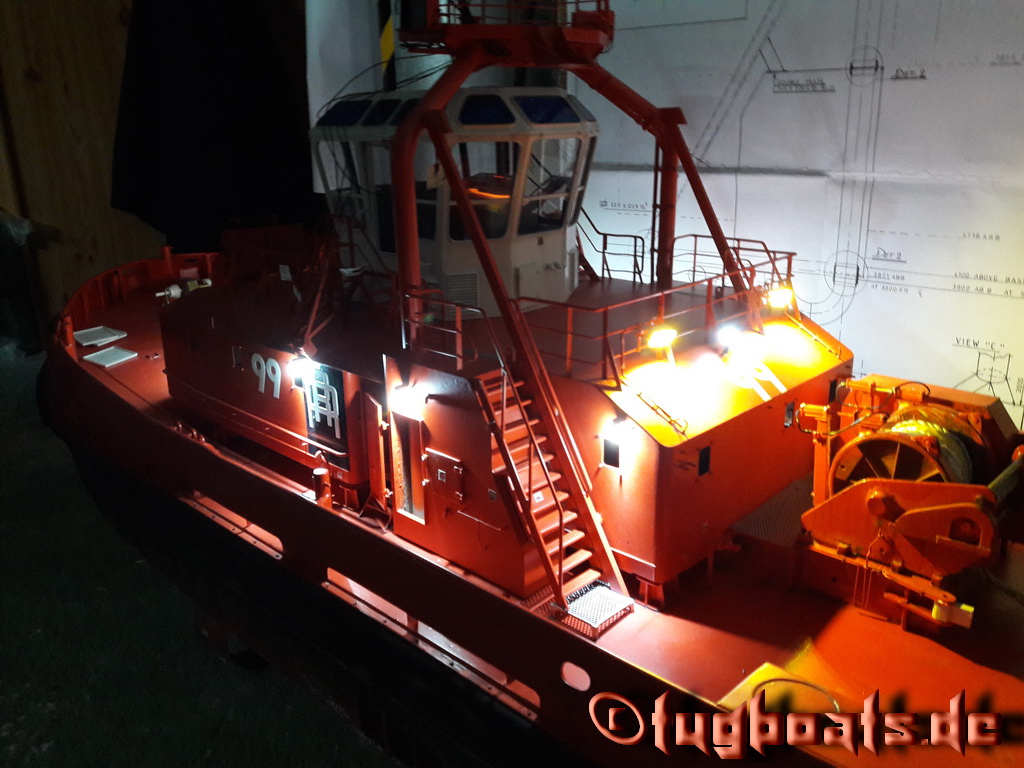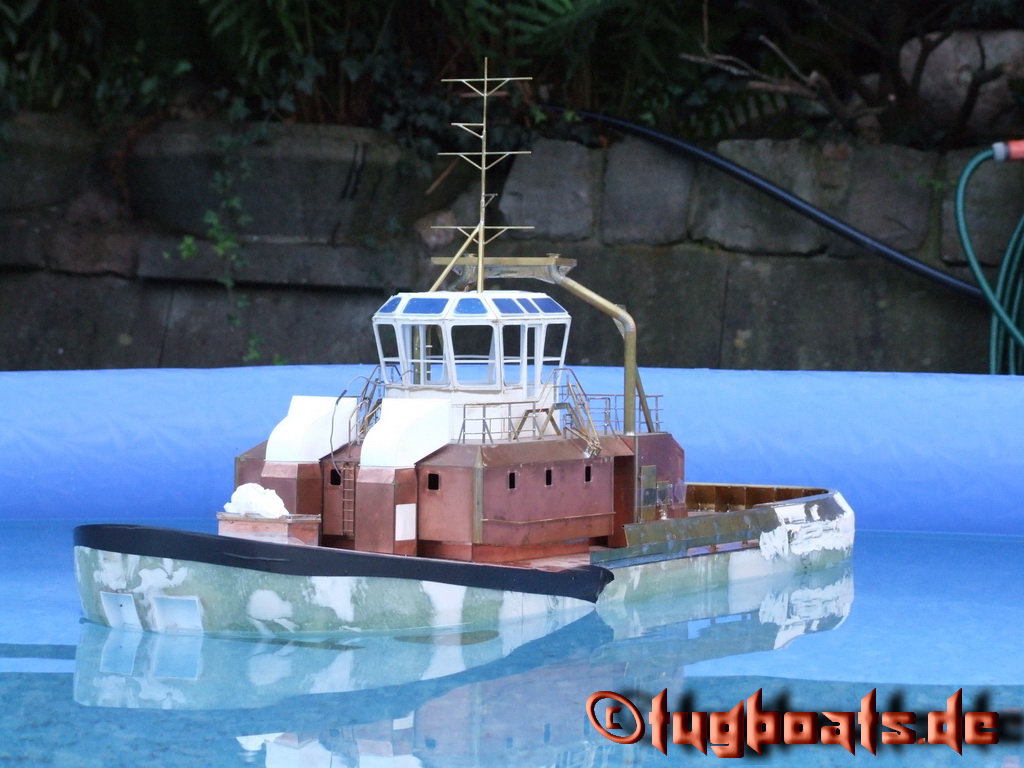Model of the Tractor tug "FRANCIA" in scale to 1:32. This boat is owned by Rimorchiatori Riuniti and stationed in the port of Salerno/Italy.
